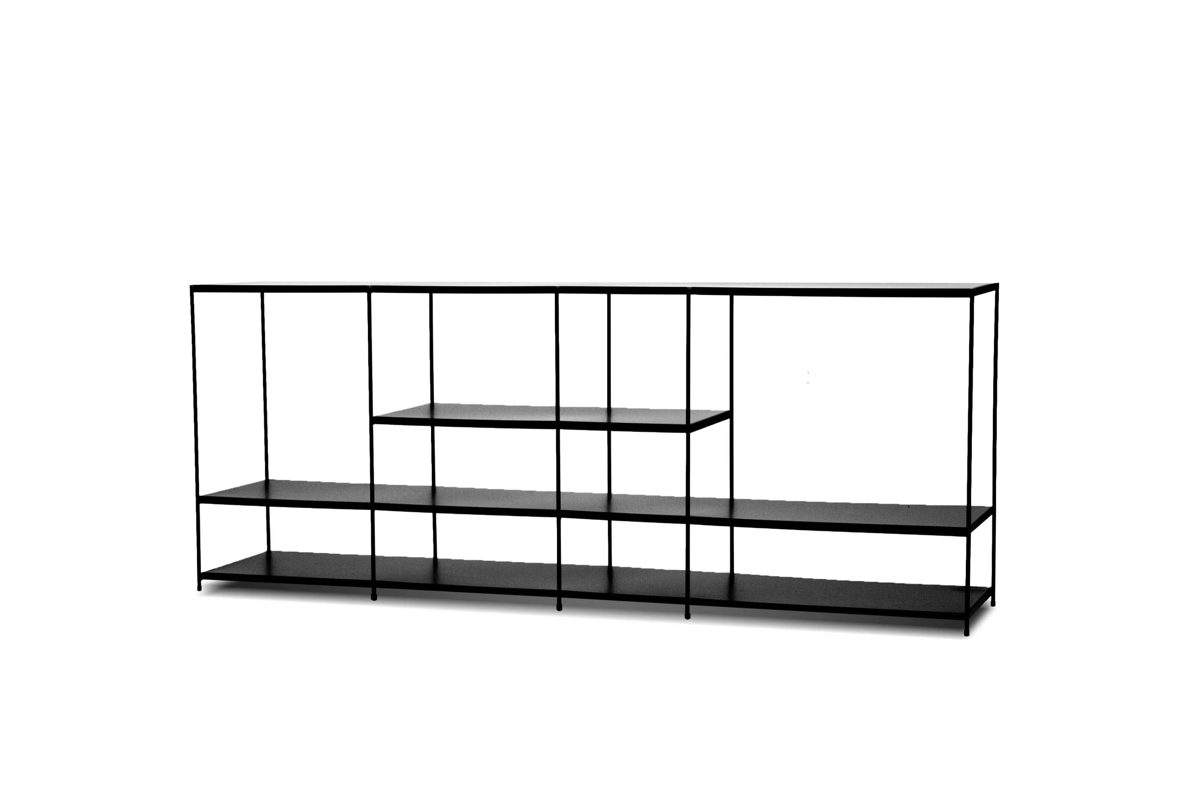 The Etta shelving series is hand made from elegant thin vertical steel tubing and flat sheet shelves. The unique openings allow for interesting displays of your favourite art objects, dinner ware, a fully stocked bar, books of all sizes, and even most practical, Houseplants! The Etta series comes in five different sizes.
