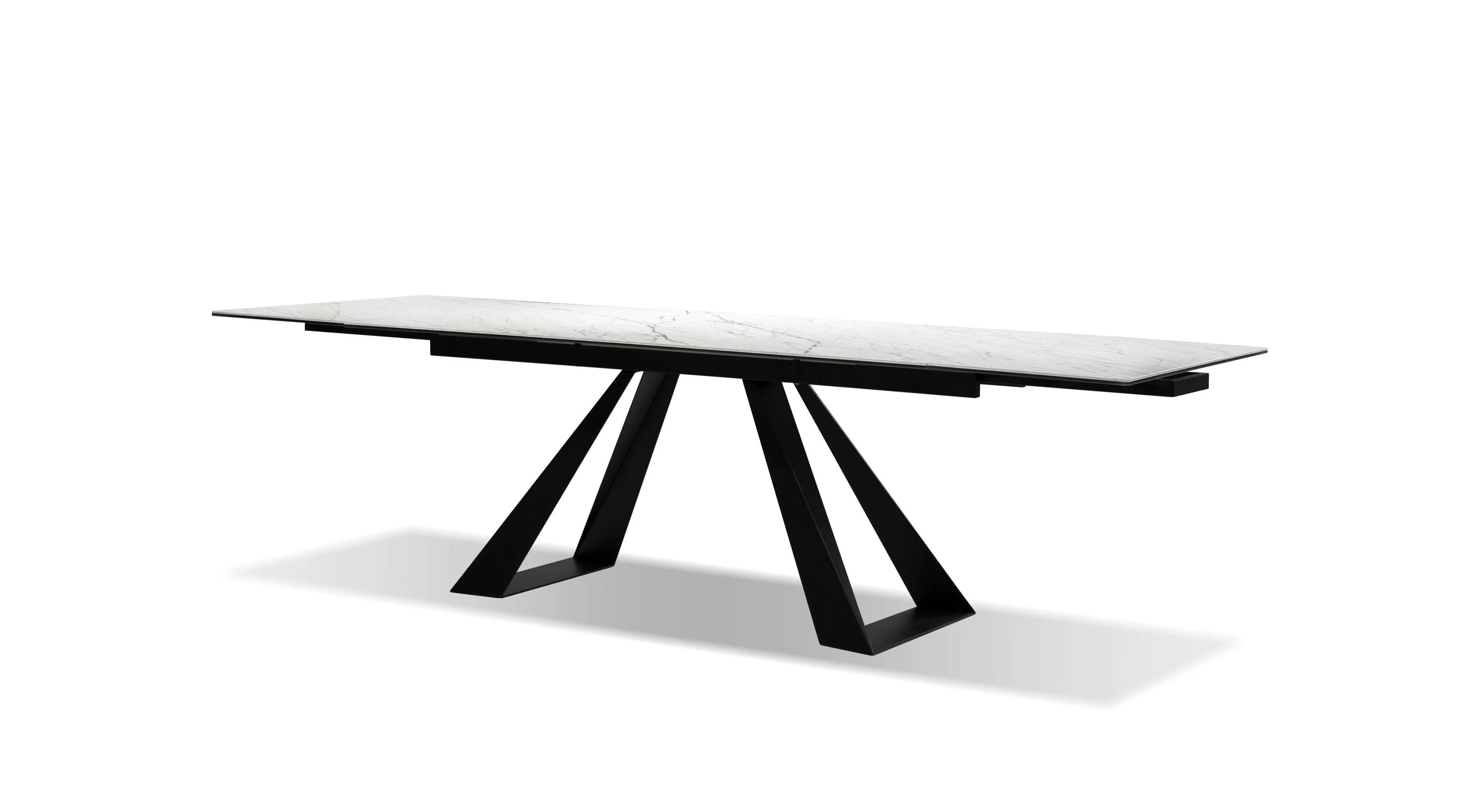 A hugely popular ceramic top dining table, the Bridge table is for everyone. Its strong ceramic top protects it from stains, and its double sided extension makes it the ideal invitation dinner table that can sit up to 12 people .