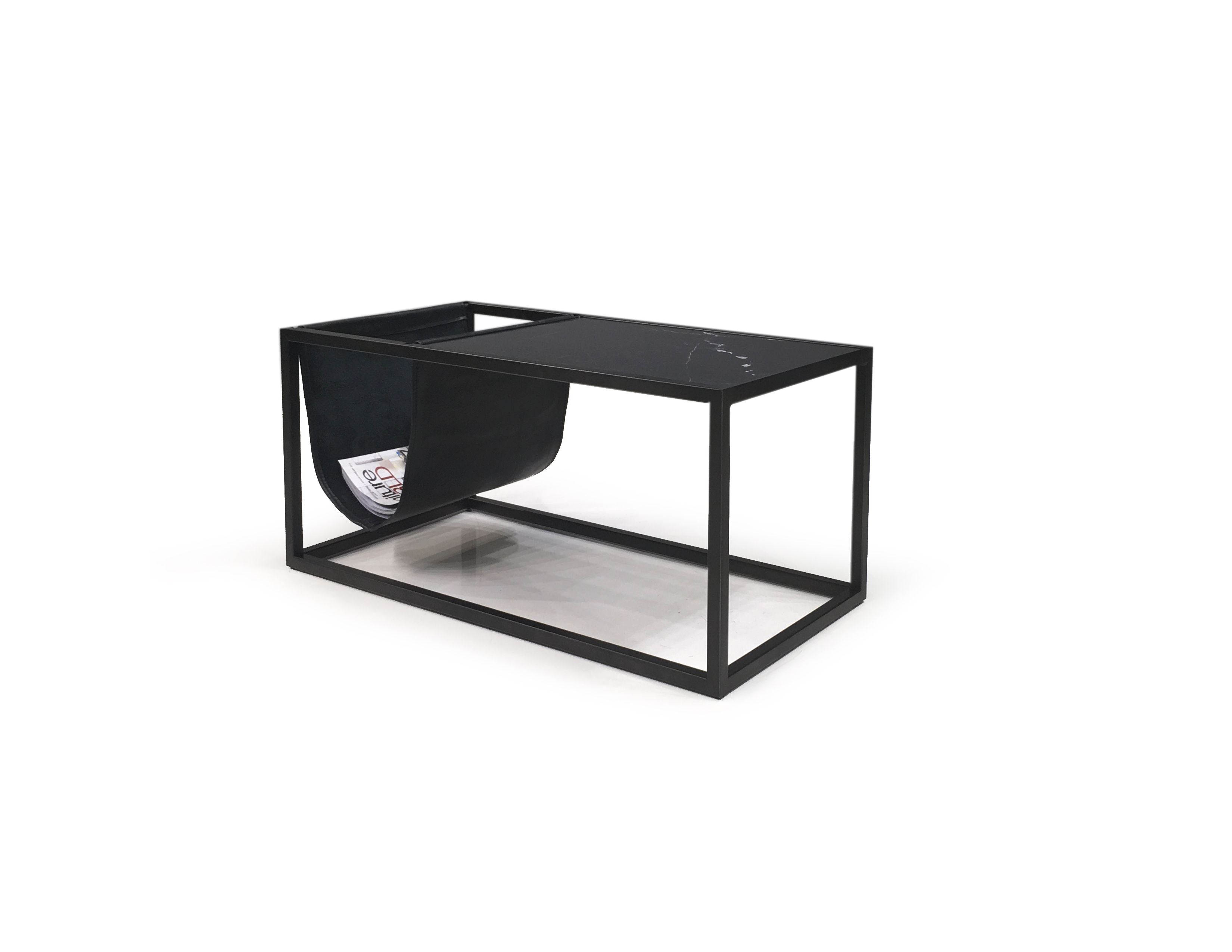 The RECEPTION occasional table is perfect for storing blankets and throws, as well as all your favorite magazines, with its leather sling and Nero Marquina marble top. Small scale and practical, this versatile table can be used as a coffee table or end table between chairs.
