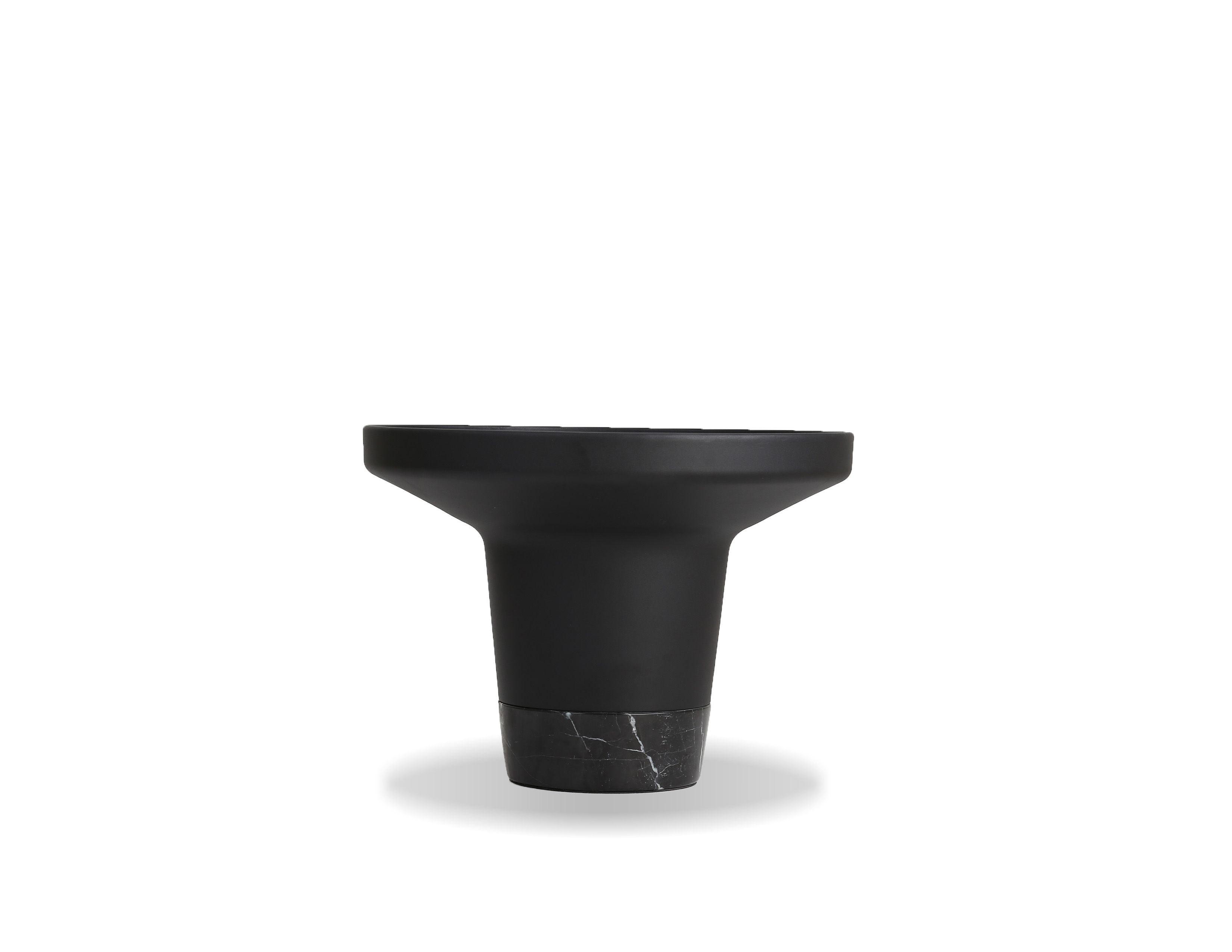 Our Spacer tables are designed for the modernist in mind. Combining Nero Marquina marble with seamlessly spun aluminum that is powder coated in a matte black finish. Two heights and diameters available. Pair them together or alone or mix and match with our Rook and Rookie tables.