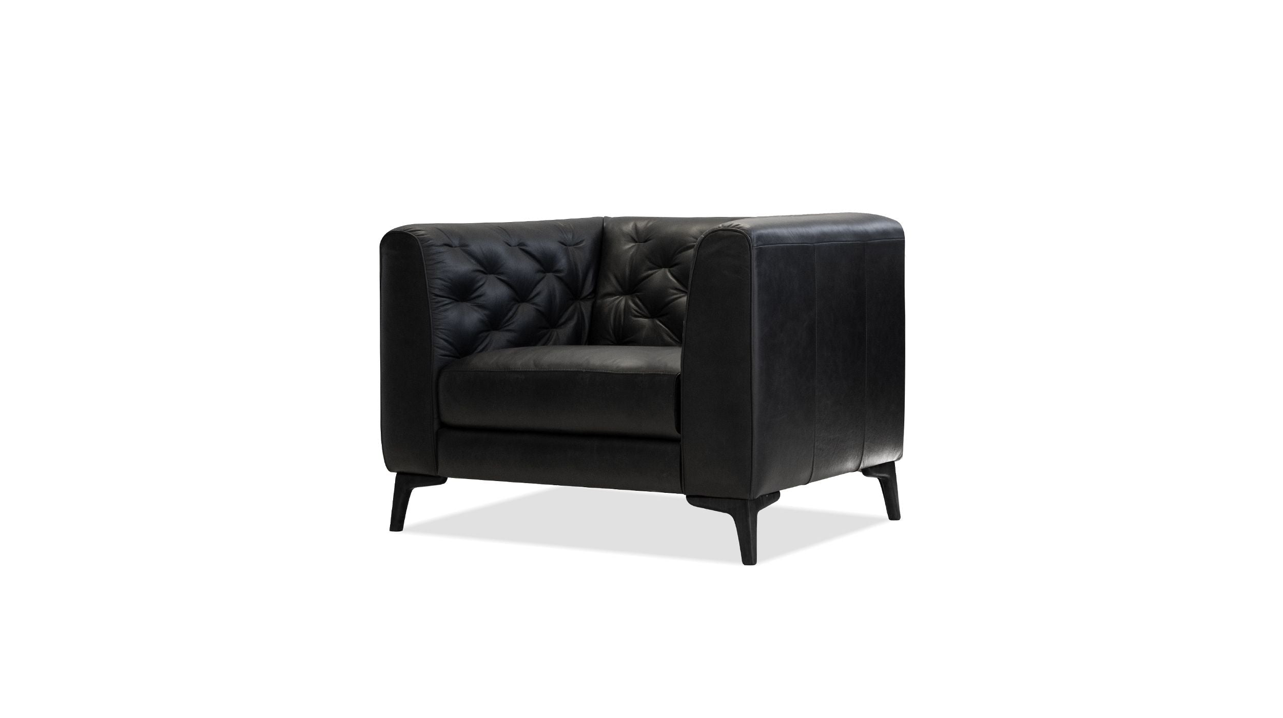 The Dalton high back leather armchair has a modern take on tufting with a blind stitch tuft. The back height is perfect for shoulder and head support and is upholstered in a super supple black top grain leather. The seat cushions are stitched into place to keep its appearance neat and tidy. Pair it with our matching Dalton sofa.