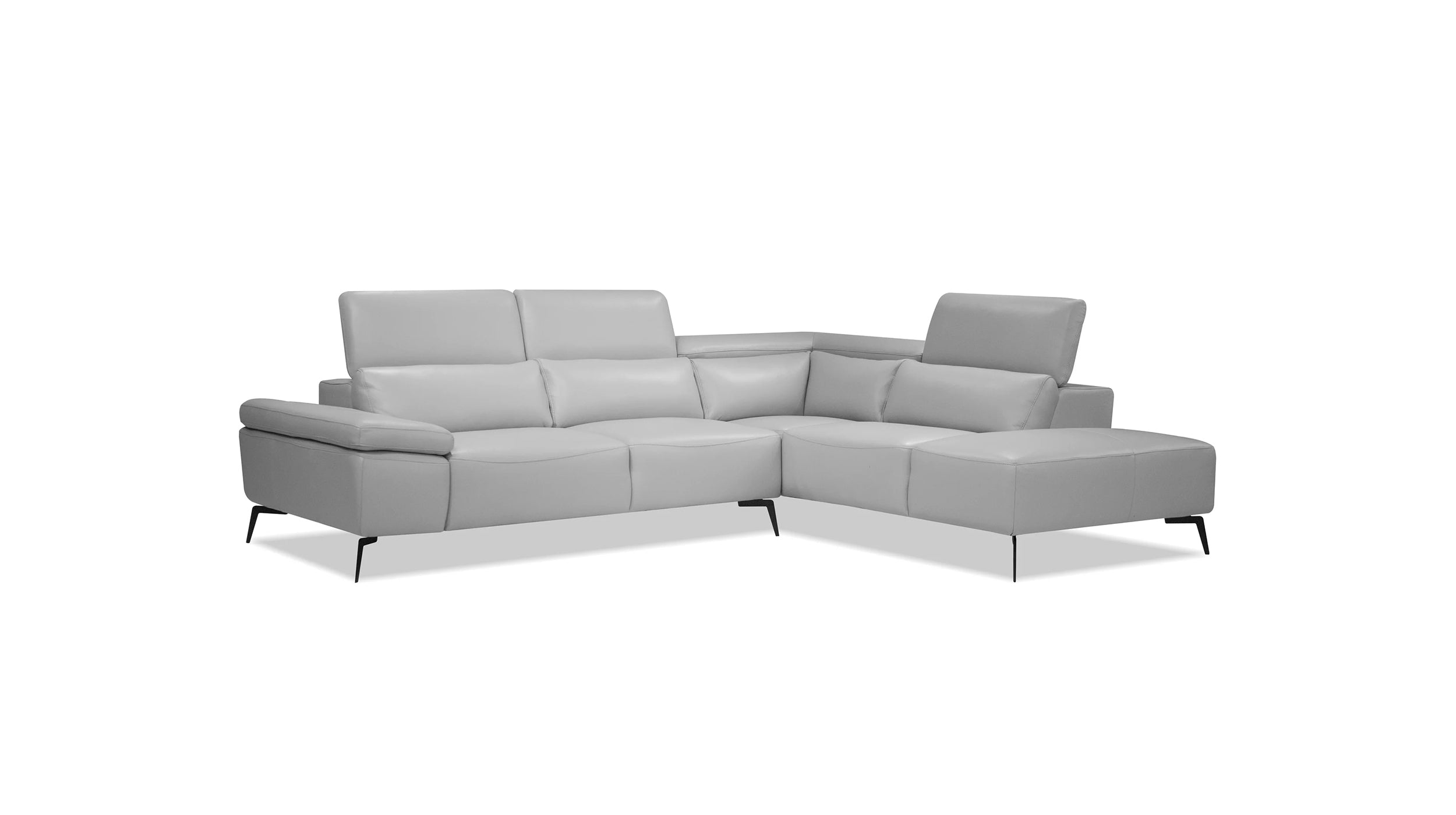 The Camello sectional is made from buttery soft semi-aniline leather and is fully covered. No splits or leather matches here. The headrests are adjustable into six customizable positions and the modern designed legs are powder coated in a matte black finish.
