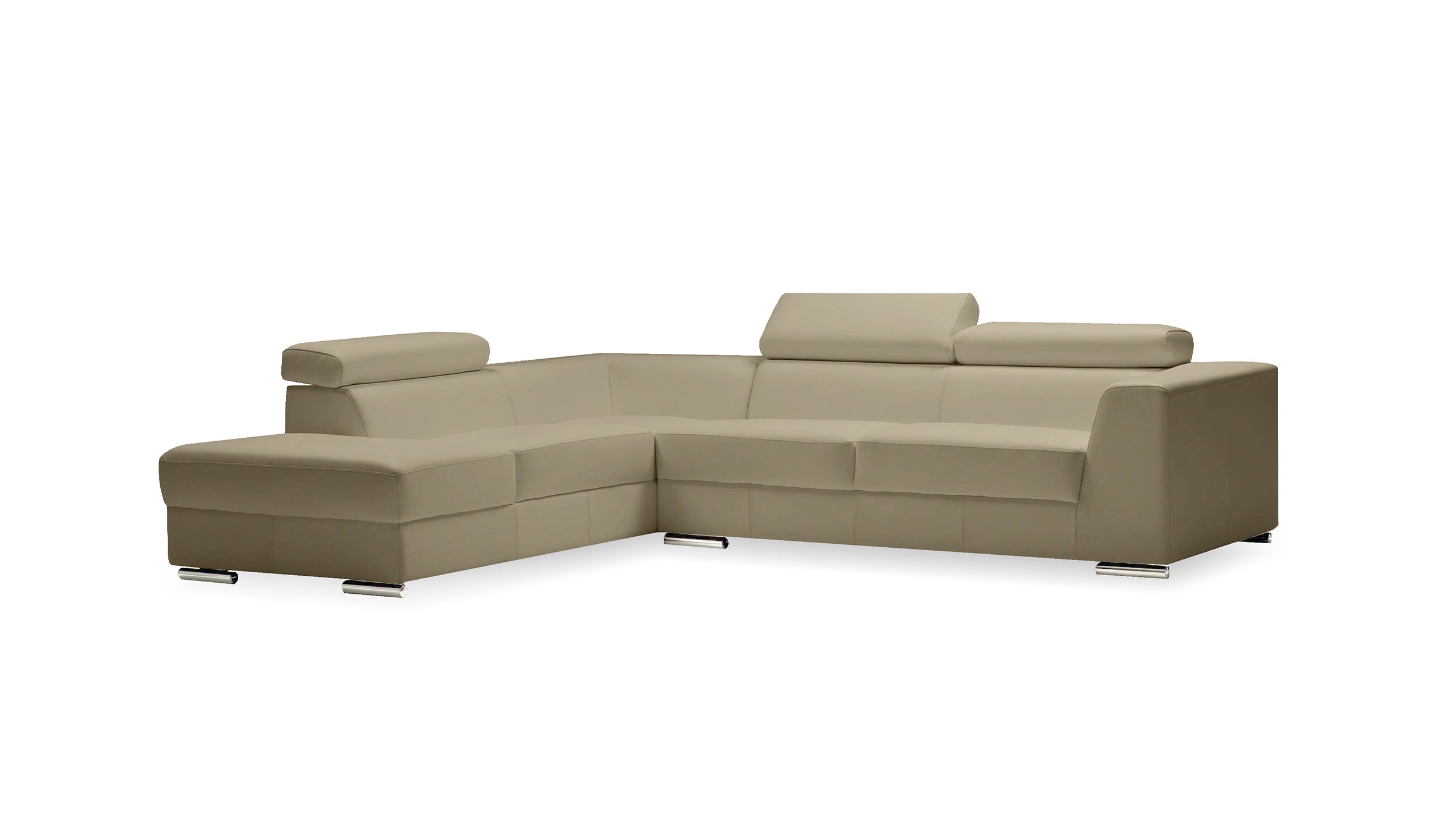 The ICON sectional is sleekly upholstered in premium TG leather with a split leather on the back and sides. The headrests are customizable and adjustable into five different positions for the comfiest of movie marathons, Netflix and chill. It features a polished stainless steel leg.