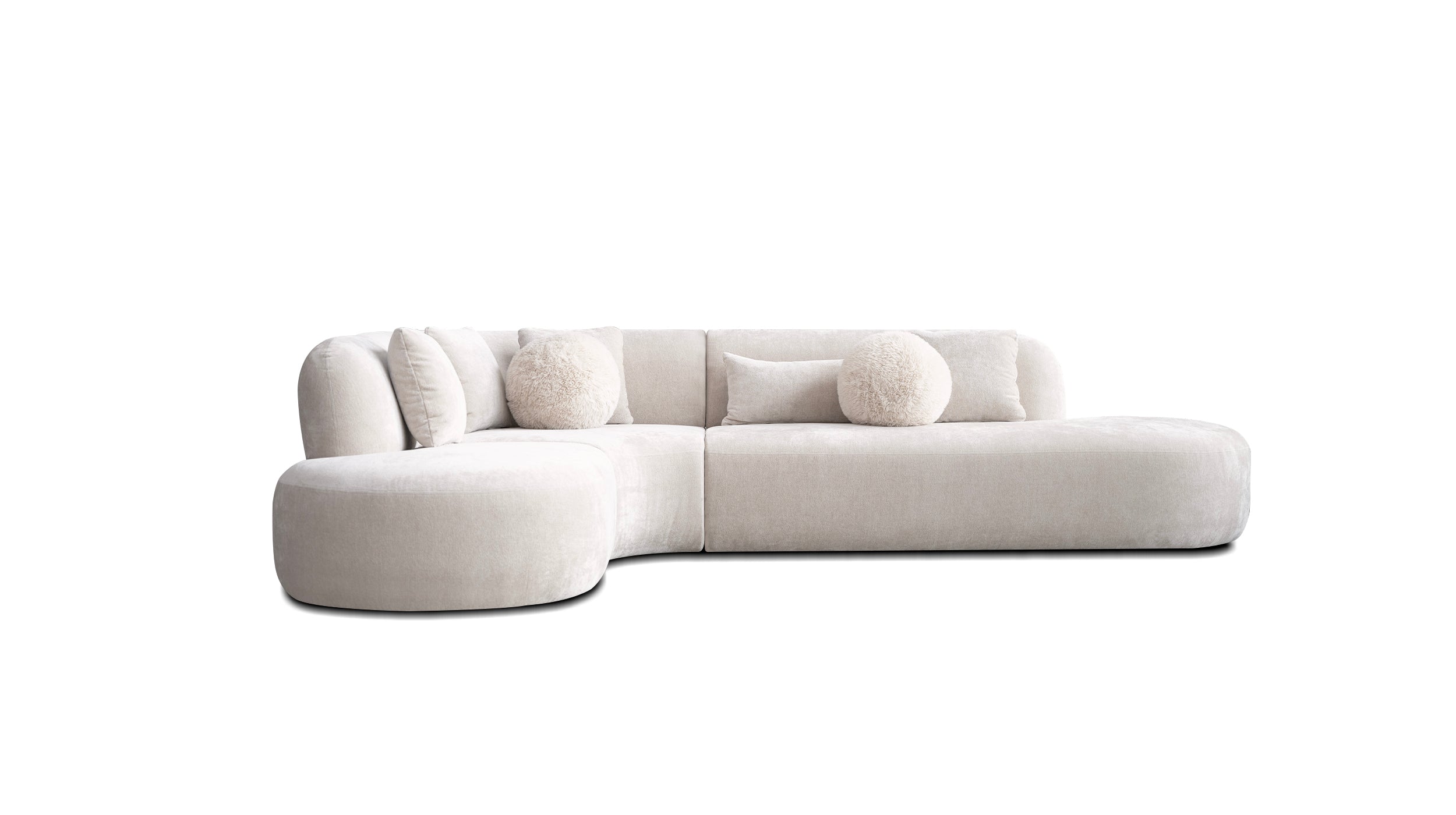 ITZA Sectional Chaise Facing Left Dark Cream with Soft Cream Square Pillows and Angora Ball Pillows