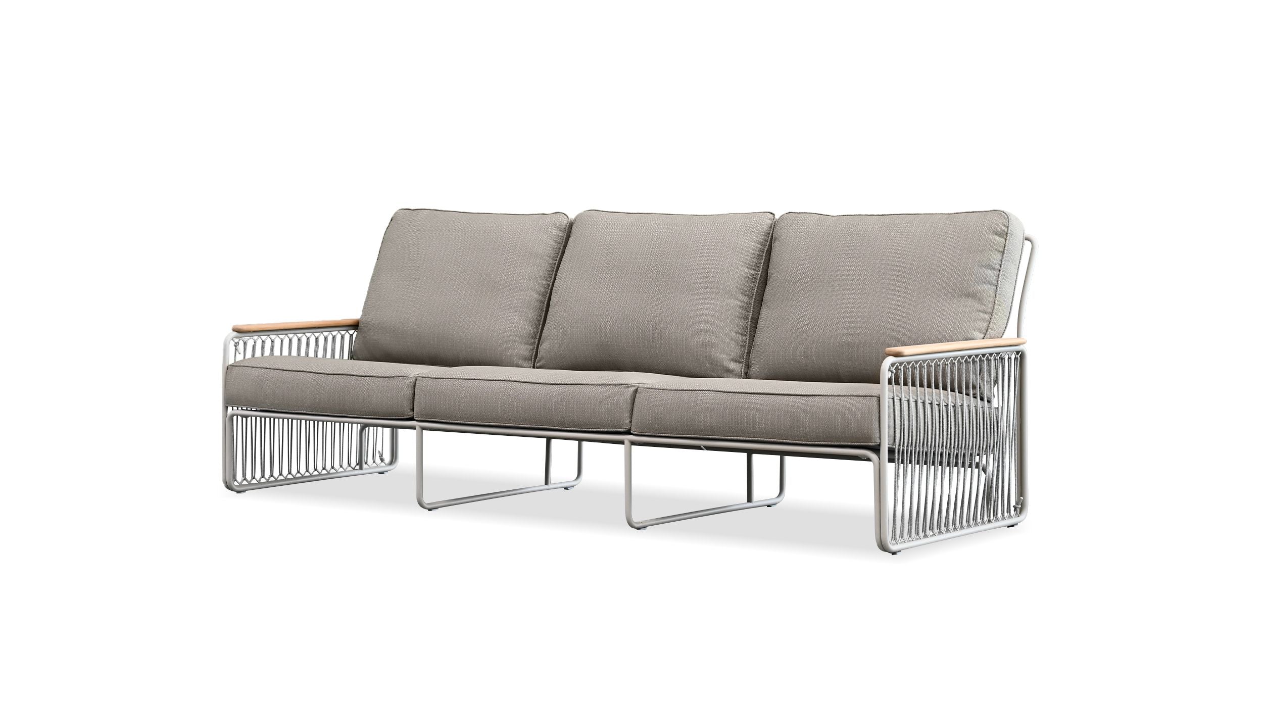 LUCERNE Sofa in Sandhill Sunproof Fabric / Teak Armrest /