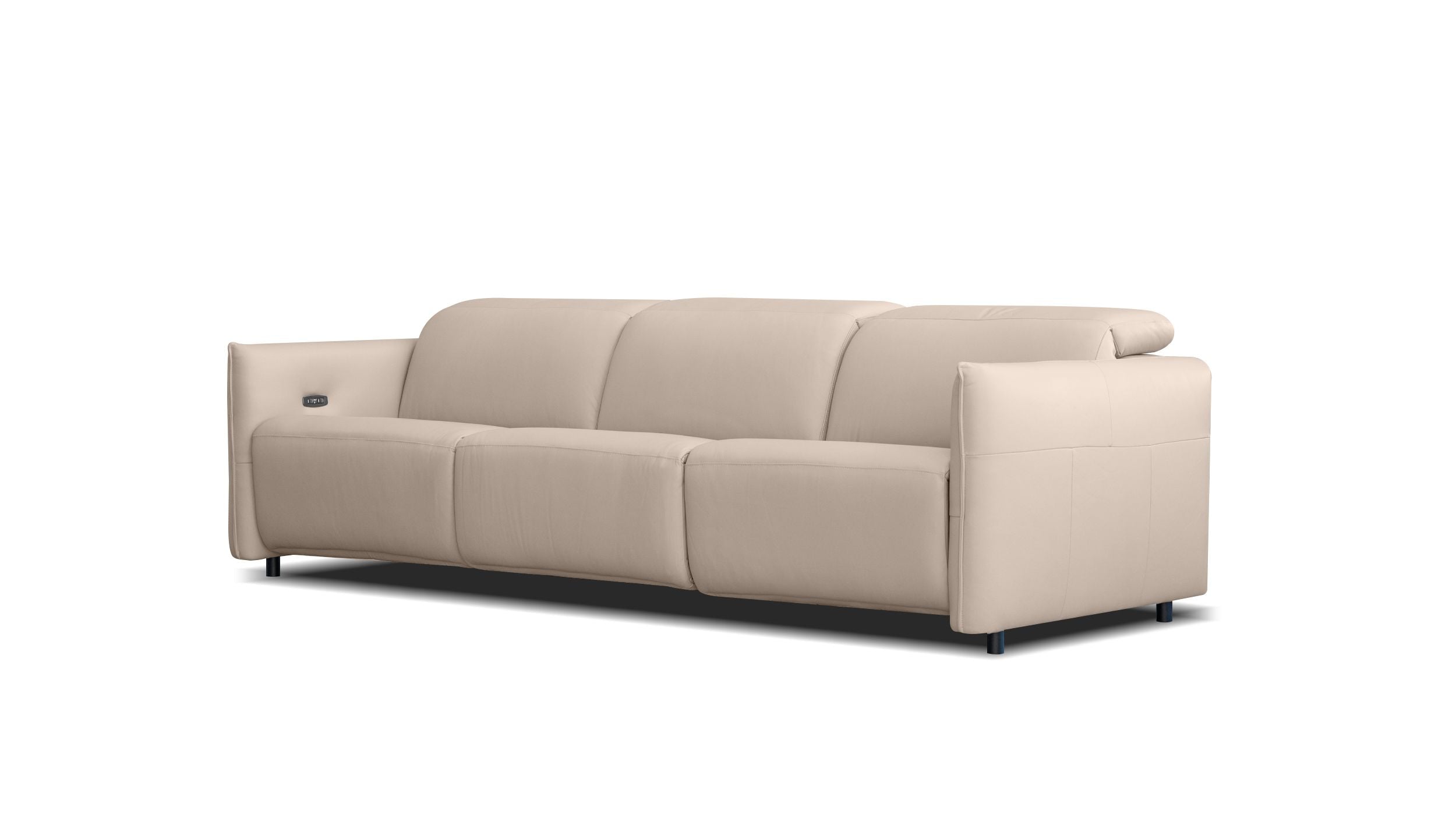The TUCKER 3-seater sofa offers the ultimate relaxation experience with its two fully reclining seats. The left and right arm seats are equipped with reclining functionality for both the backrest and footrest, allowing you to find your perfect lounging position. Experience the comfort of a traditional recliner with the TUCKER's modern and sleek design, making it a stylish and comfortable addition to any living space. Its streamlined silhouette and plush cushioning create an inviting and sophisticated seating option. Available in Creta or Olive Leather.