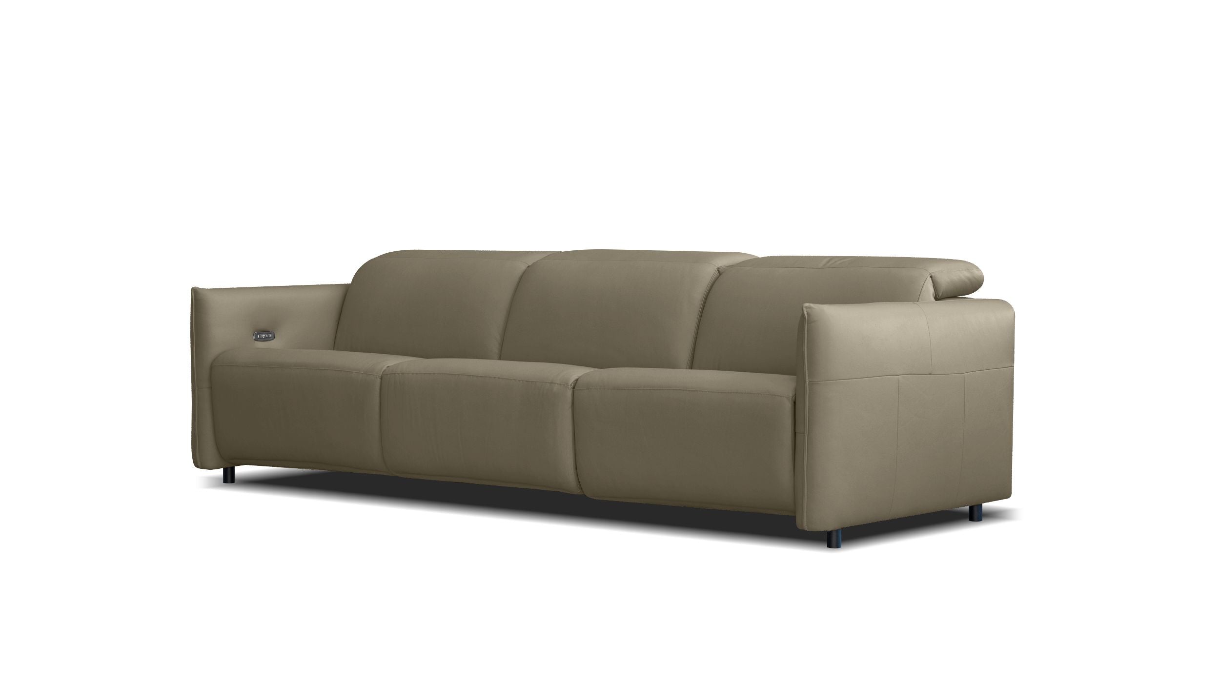 The TUCKER 3-seater sofa offers the ultimate relaxation experience with its two fully reclining seats. The left and right arm seats are equipped with reclining functionality for both the backrest and footrest, allowing you to find your perfect lounging position. Experience the comfort of a traditional recliner with the TUCKER's modern and sleek design, making it a stylish and comfortable addition to any living space. Its streamlined silhouette and plush cushioning create an inviting and sophisticated seating option. Available in Creta or Olive Leather.