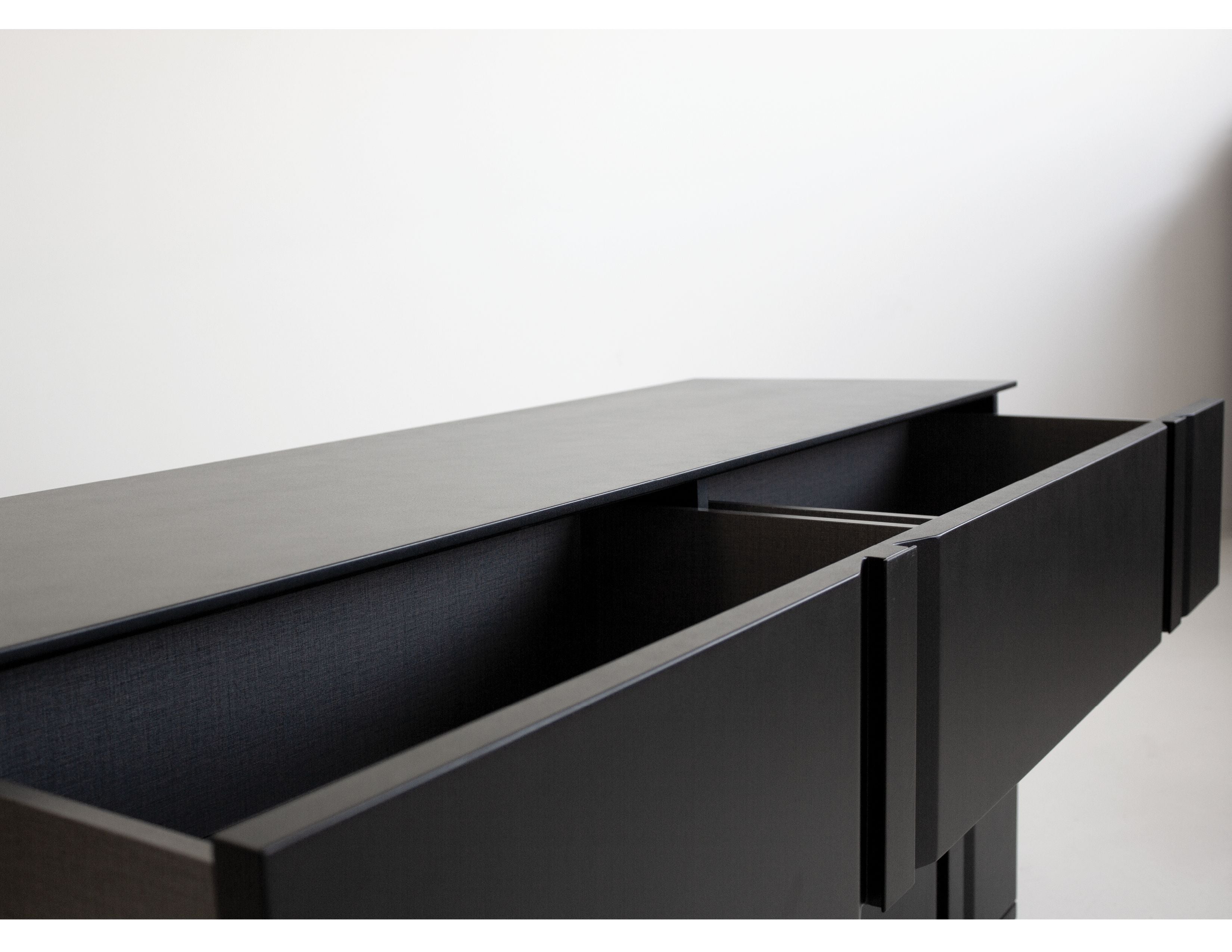 The Carbon casegood collection: where design is in the details. Its all black matte look brings the latest in fashion finishes into the bedroom with soft close drawer features and a minimal drawer detail that doubles as a pull. Now available in 2 matte choices black or stone.